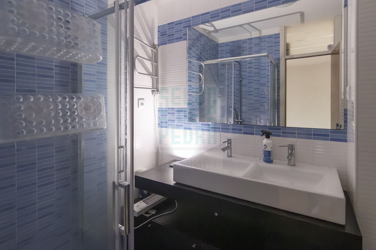 Possui duas casas de banho, sendo uma completa com base de duche e outra de serviço.